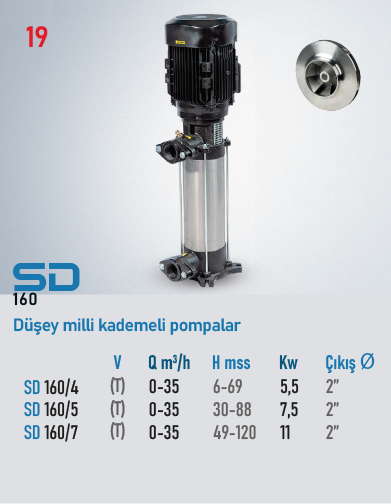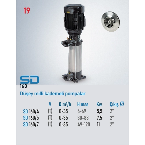 SD 160/7 T Düşey Milli Kademeli Pompalar