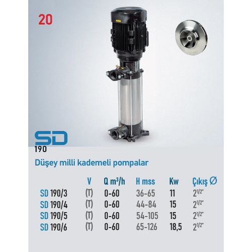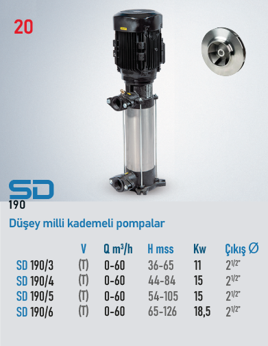 SD 190/3 T Düşey Milli Kademeli Pompalar